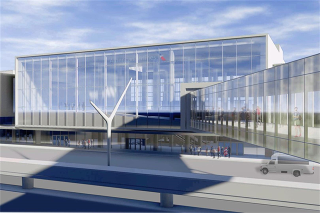 A significant component of the project is the new Terminal Vertical Core, which will provide escalators, elevators, and an elevated pedestrian walkway linking Terminals 4 and 5 to the APM’s West CTA Station. The Vertical Core will also include office and support spaces for airline operations, TSA, and other airport partners. Its glass curtain wall reflects the mid-century modern architectural language introduced throughout the Central Terminal Area, creating a cohesive visual identity across the airport.